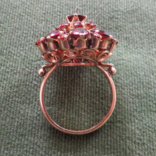 14K Gold Floral Cluster Cocktail Ring Set Layered Garnets