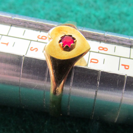 18ct Gold Heart Shaped Signet Ring Set With A Red Stone 1.66gms