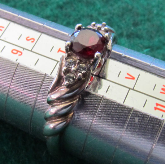925 Sterling Silver Dress Ring Set With A Garnet Having Clear Shoulder Stones