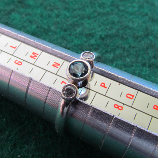 925 Sterling Silver Bezel Set Blue Topaz Dress Ring With 1 Clear Stone Either Side