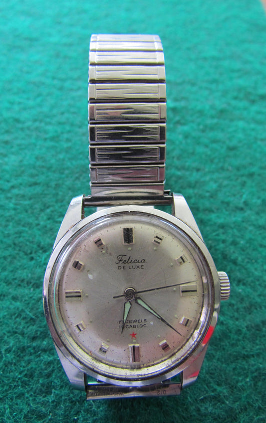 Felicia De Luxe Mens Stainless Steel Wriswatch Crown Wind & Set