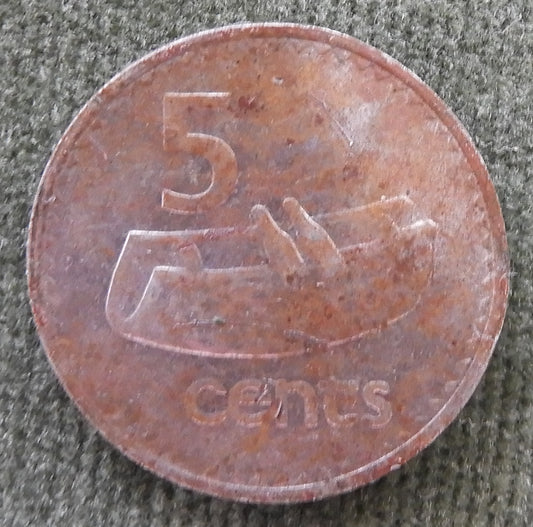 Fiji 1977 5 Cent Queen Elizabeth Coin - Disfigured