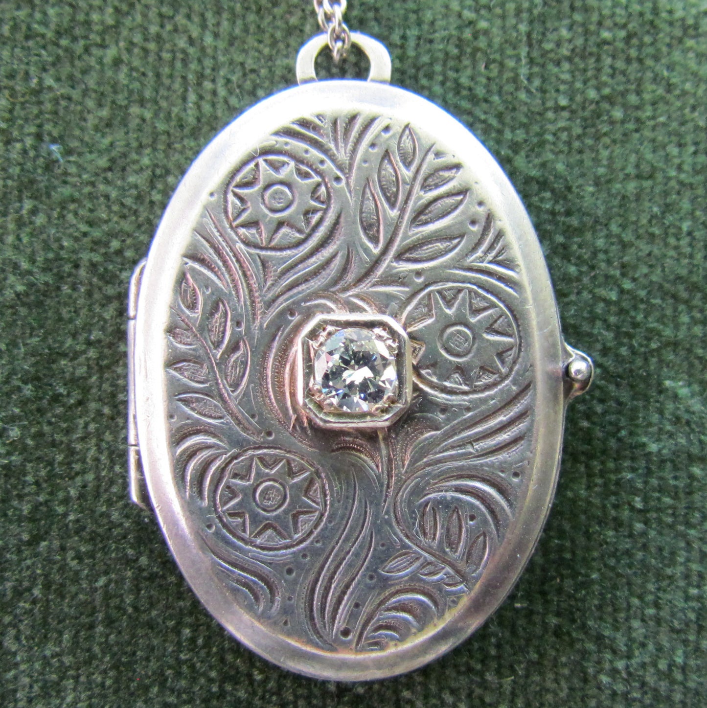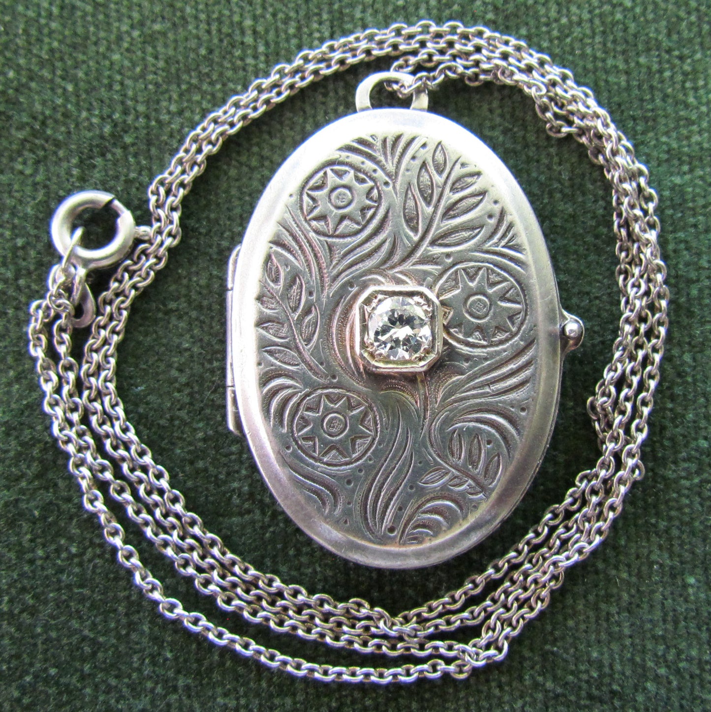 German Kordes & Lichtenfels 1960's Silver Oval Shaped Photo Locket Set With Diamond. Please view images as all images are of the actual item.