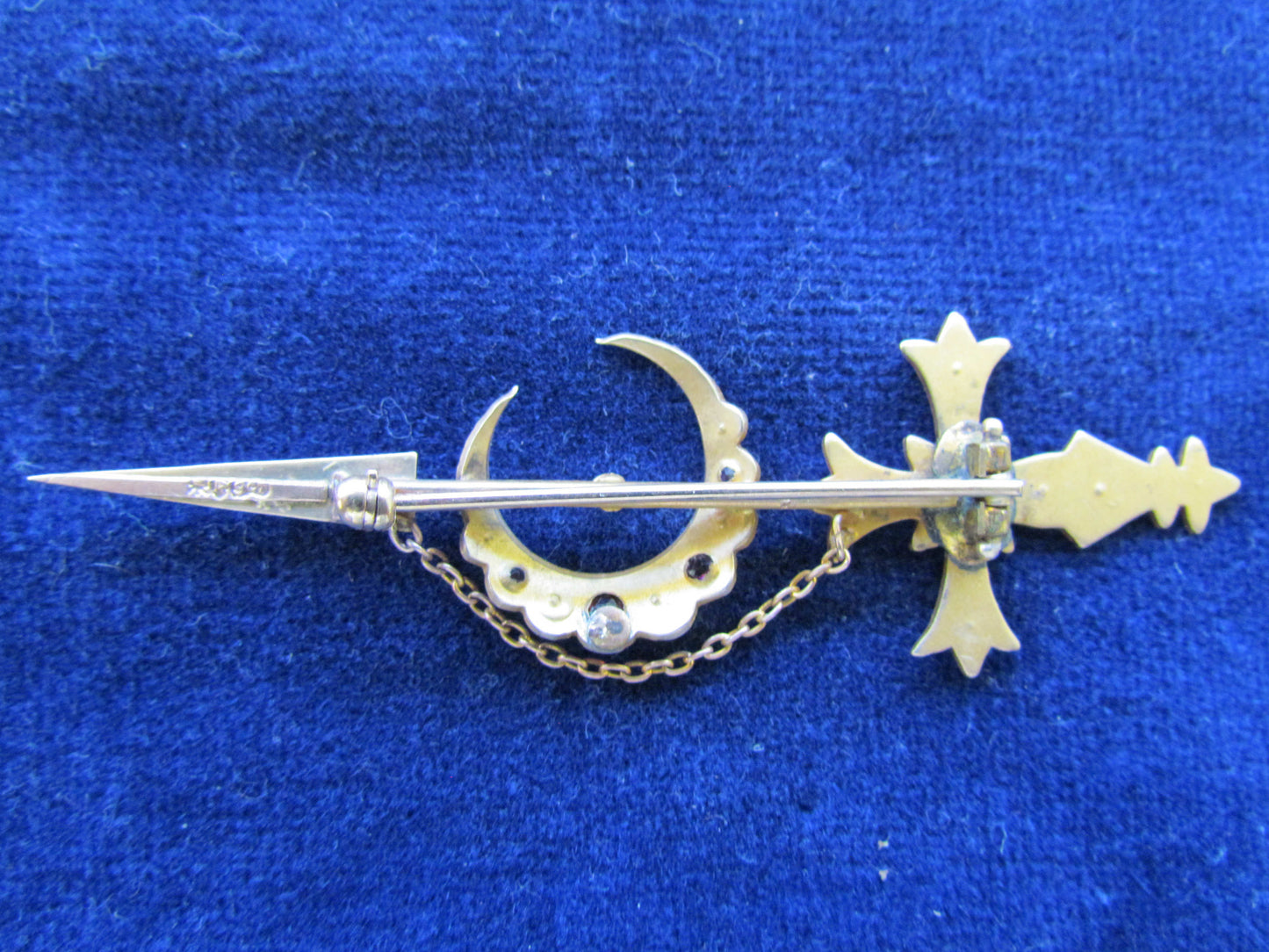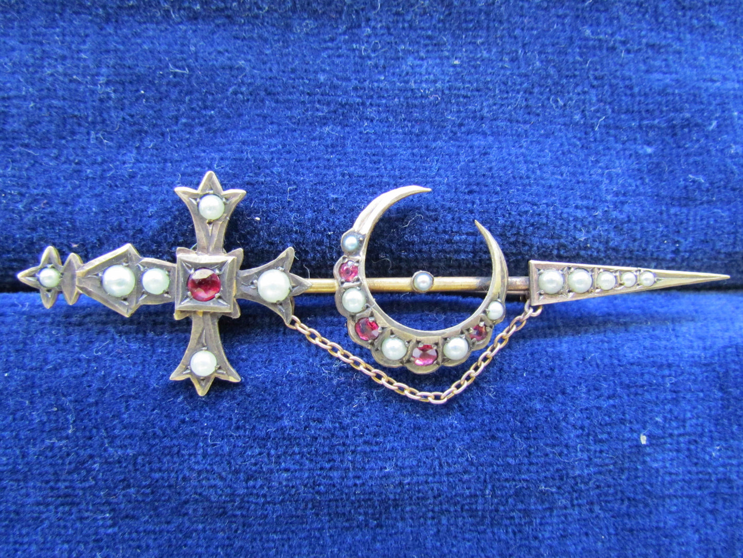 9ct Gold Garnet And Seed Pearl Bar Brooch With Safety Chain Hallmarked R