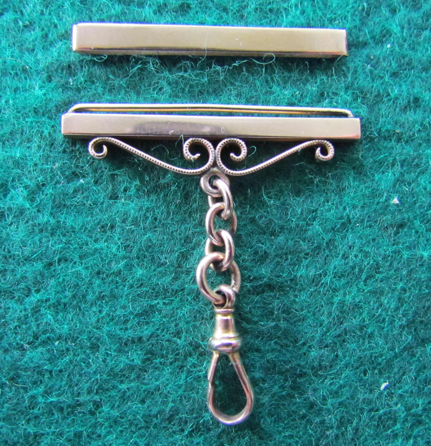 9ct Gold Nurses Watch Medallion Bar With Claw End 4.45gms. A 9ct gold ribbon bar with chain link and claw for watch or medallion. Please view images as all images are of the actual item.