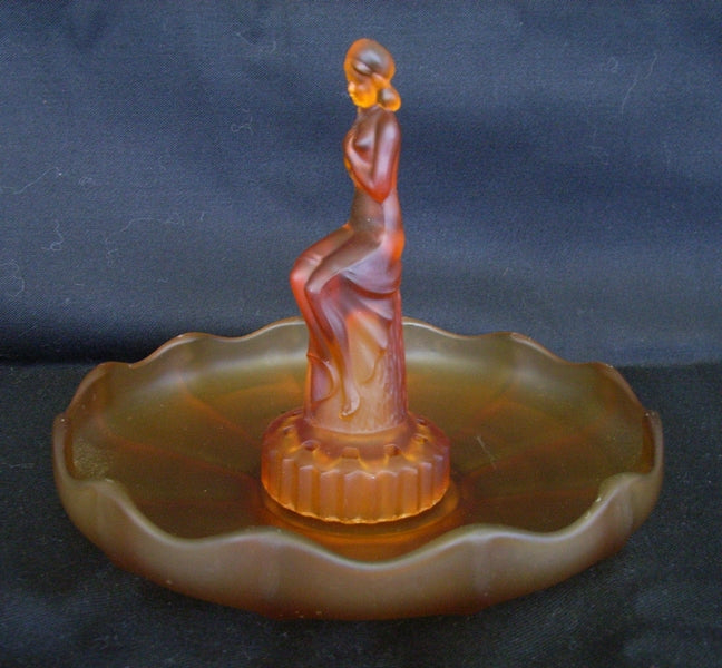 Amber glass float bowl depicting an Art Deco period female figure seated