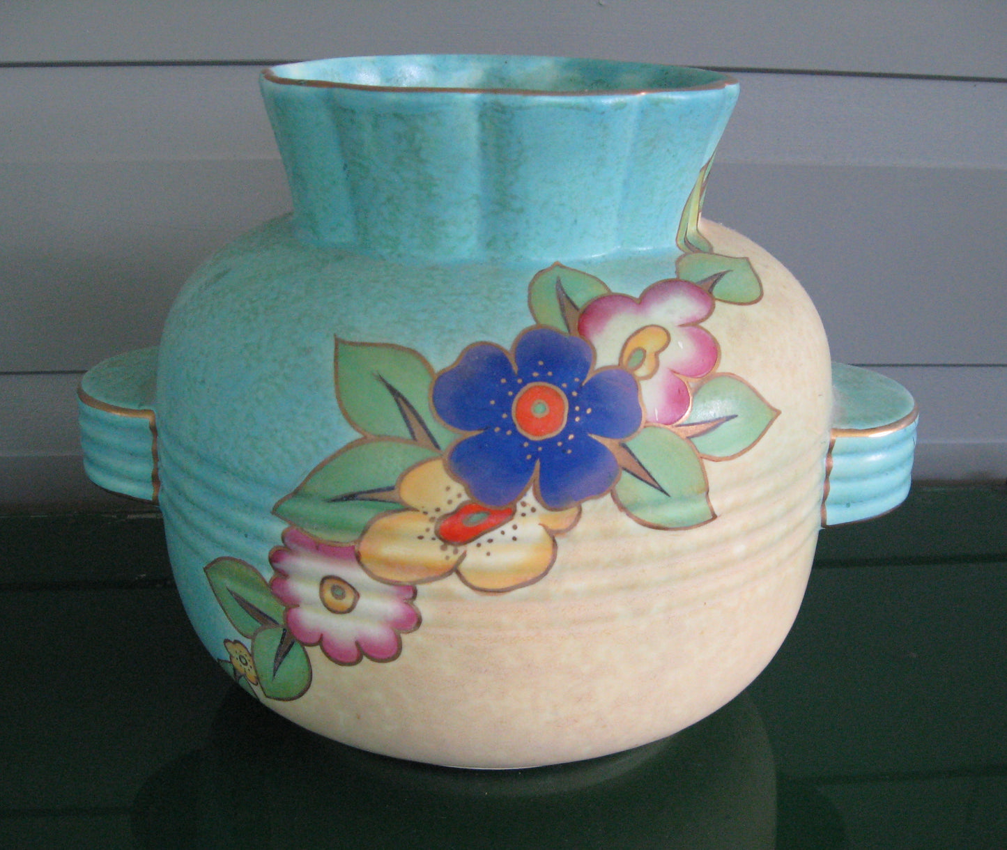 Large Art Deco Crown Devon squat hand painted vase c.1930.