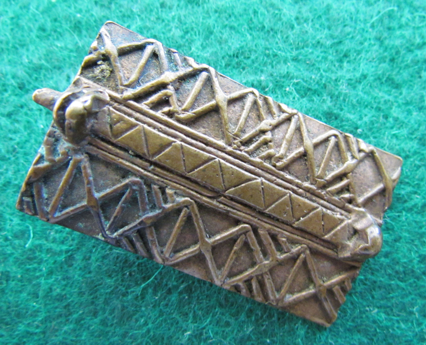 An African gold dust box lid from the Ashanti (Asanti) goldfields. Hand cast in brass (no Base) with repeated x lattice decoration. Please view images as all images are of the actual item.