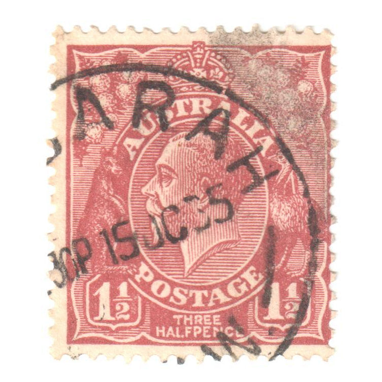 Australian 1 1/2 Penny Brown KGV King George V Stamp. Type 5 Small Multiple Watermark. Please view images as all images are of the actual item.