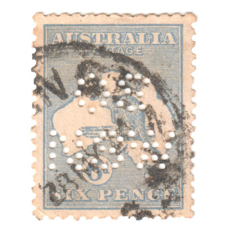 Australian 1913 6d 6 Penny Ultramarine Kangaroo Stamp - Perf 11.5-12. OS NSW perforated, large single watermark. All images are of the actual item.