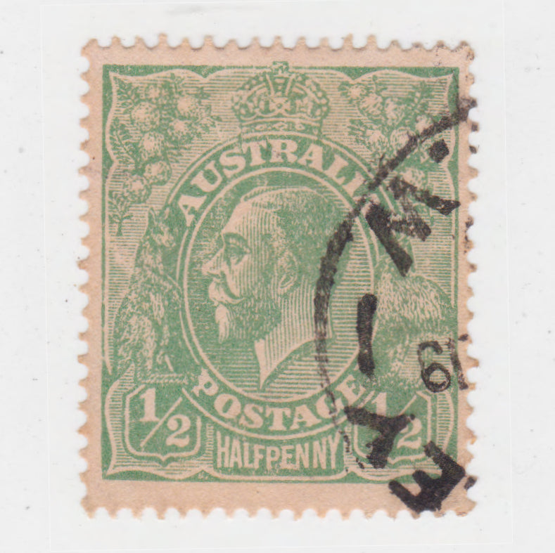 Australian 1916 1/2 Penny Green KGV King George V Stamp. Type 4 Large Multiple Watermark. All images are of the actual item.