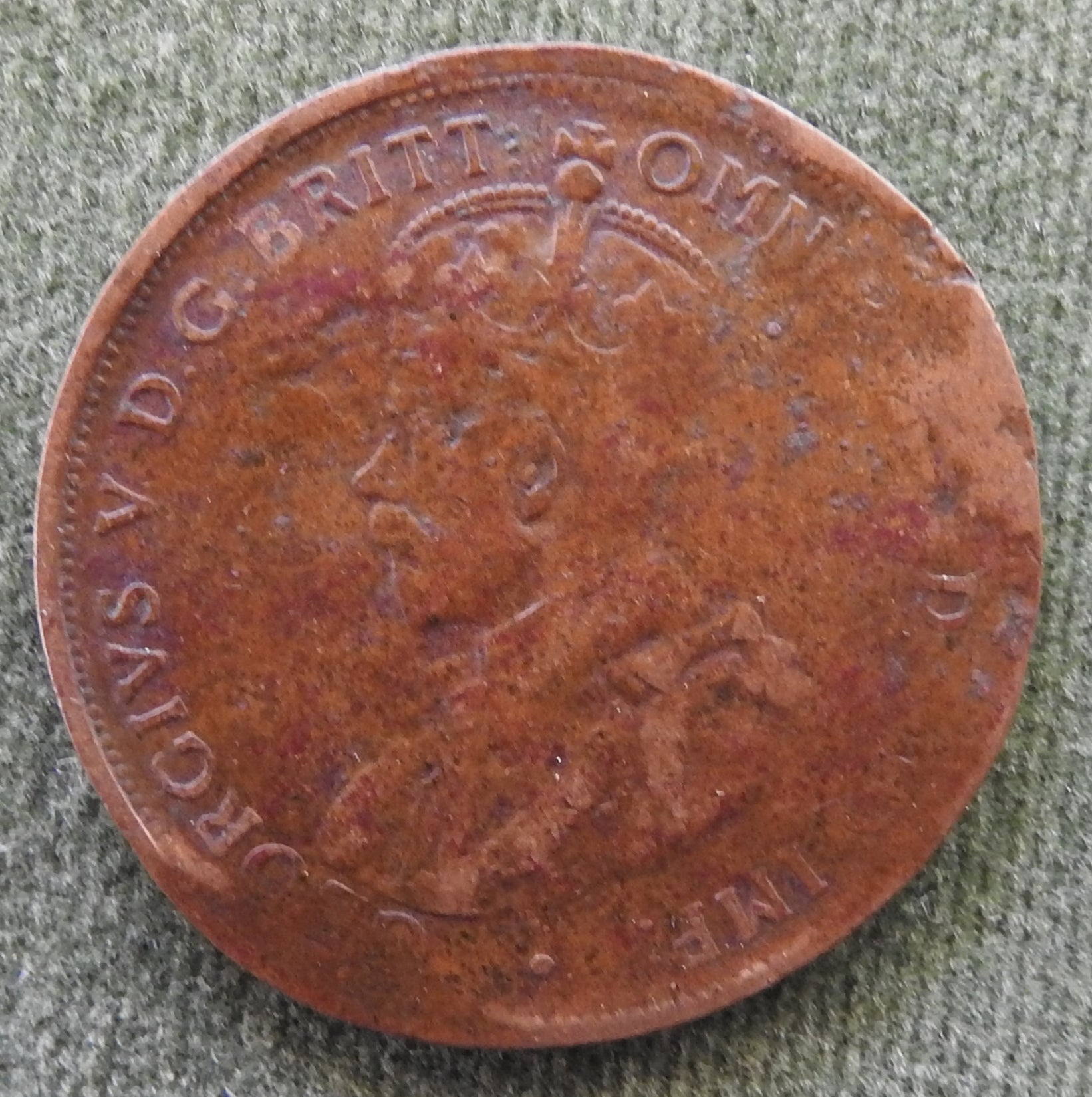 Australian 1919 1d 1 Penny King George V Coin - Disfigured With Error. A poor to fair coin with worn detail consistent with long term circulation and heavy handling being disfigured with error issues. Please view images as all images are of the actual item.