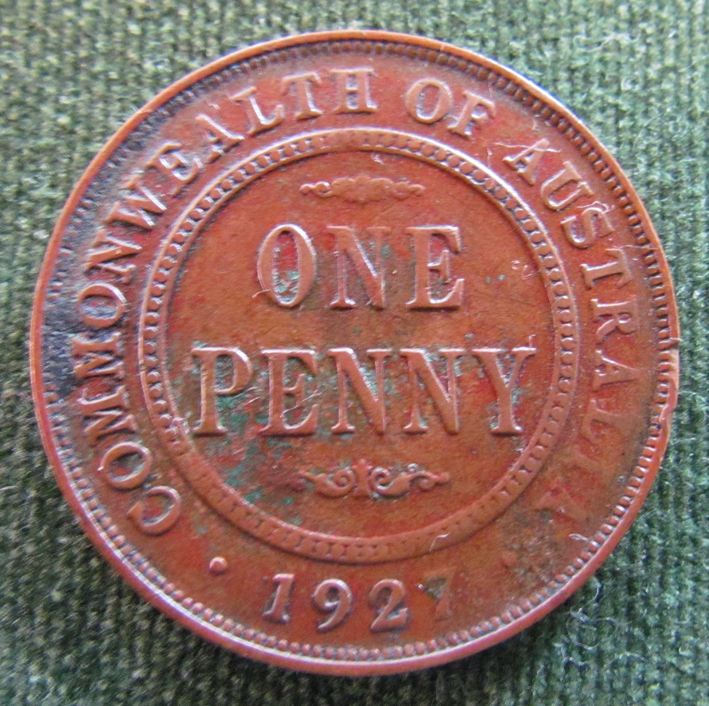 Australian 1927 1d 1 Penny King George V Coin - Variety Lettering Fadeout