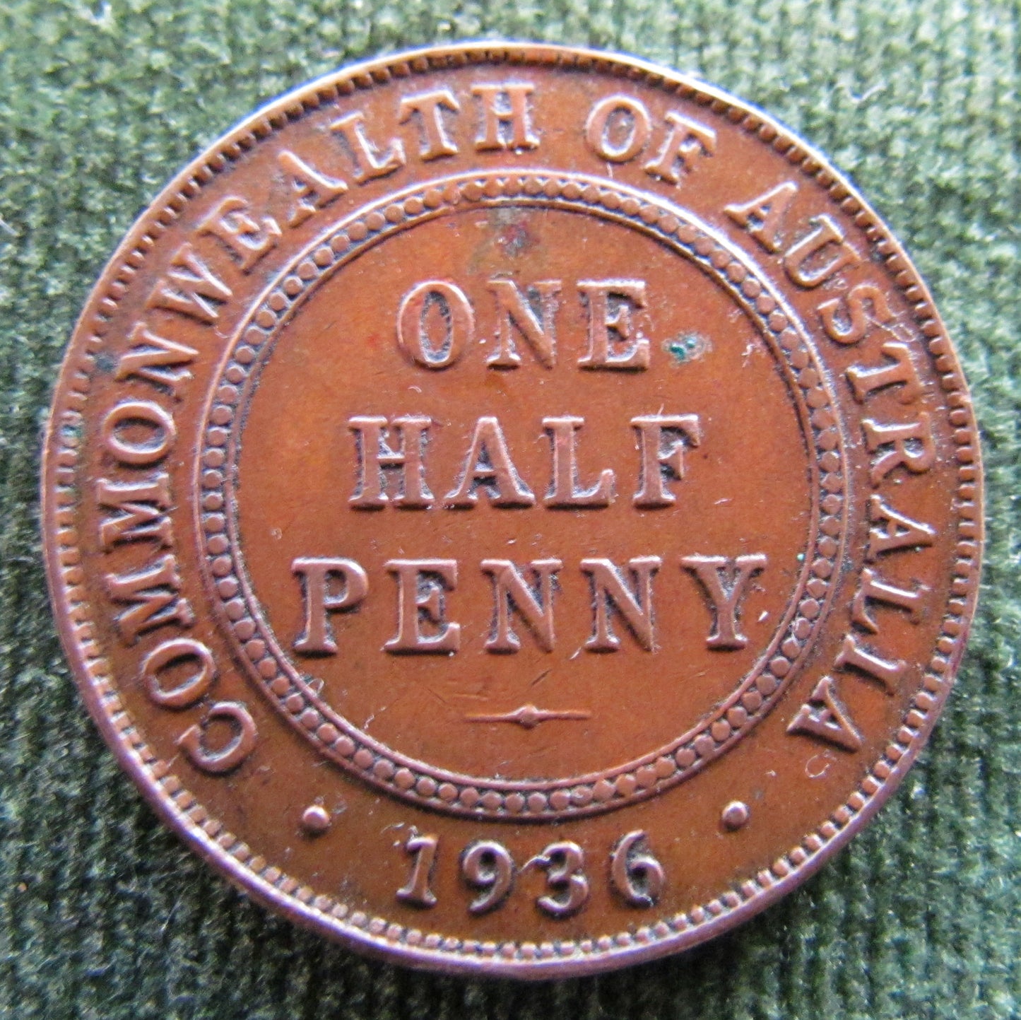 Australian 1936 1/2d Half Penny King George V Coin. A good quality coin with even toning, well circulated. Please view images as all images are of the actual item.