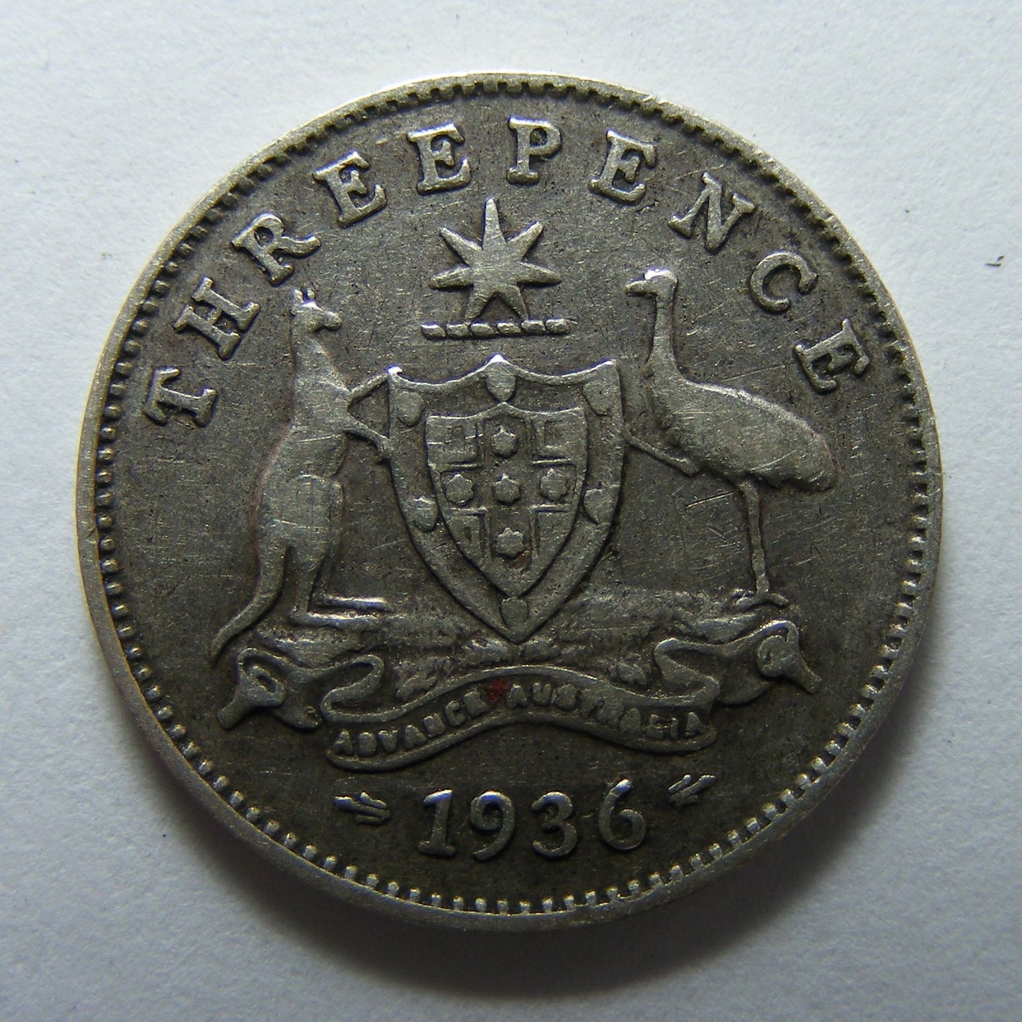Australian 1936 3d Three Pence King George V Coin Circulated. A good coin showing wear & tear consistent with its age. Please view images as the images shown are of the actual item.