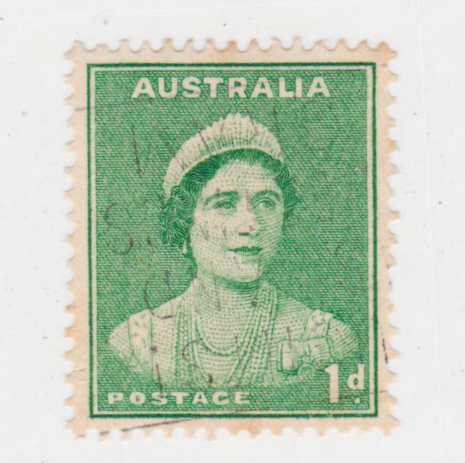 Australian 1938 1 Penny Emerald Green Queen Elizabeth Stamp Type 2