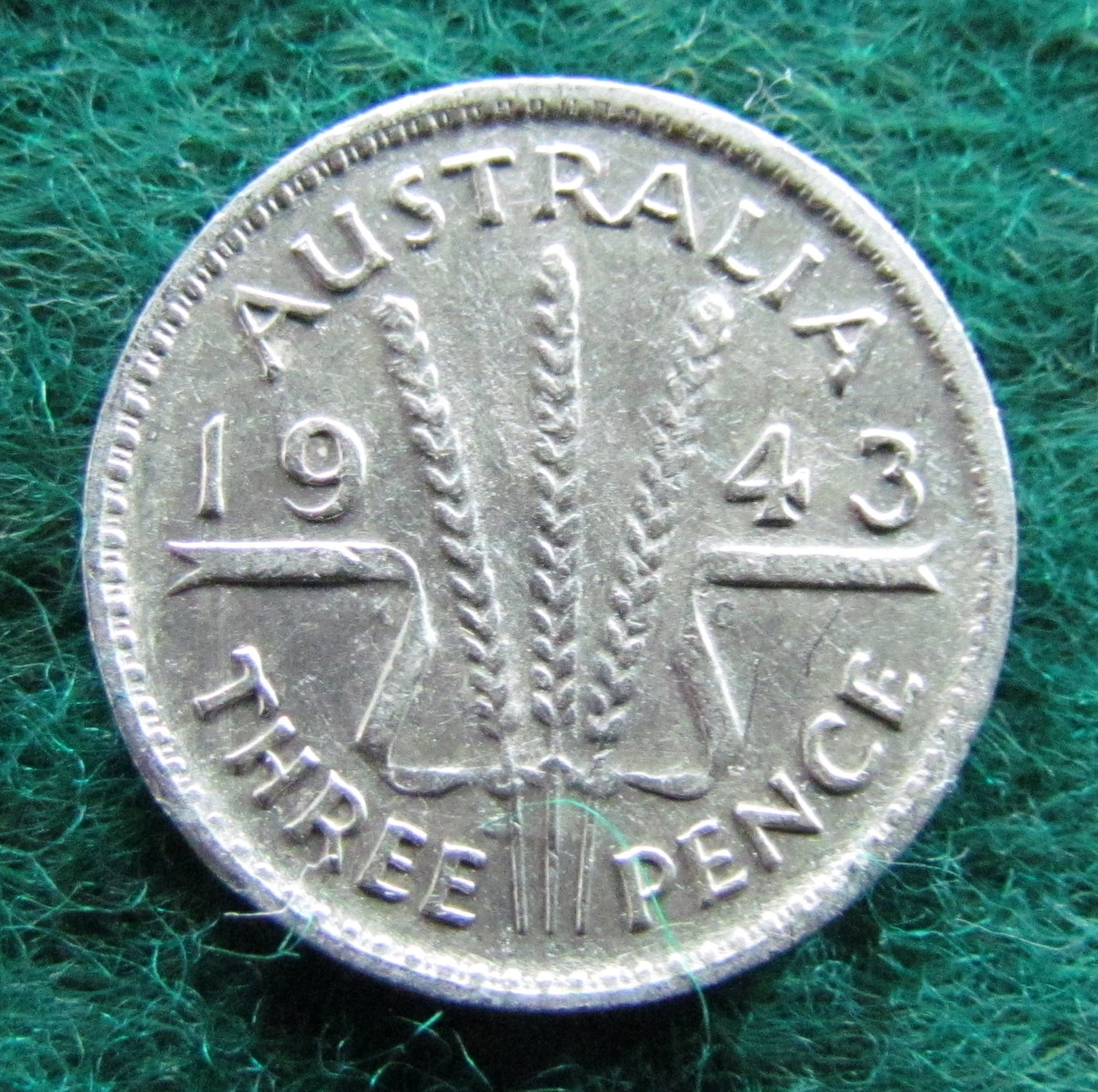 Australian 1943 3d Three Pence King George VI Coin Circulated