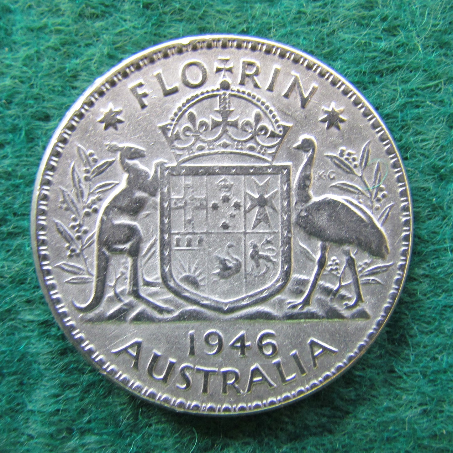 Australian 1946 2/- Florin King George VI Coin - Circulated. A good coin with wear & toning consistent with its period in circulation. Please view images as all images are of the actual item.