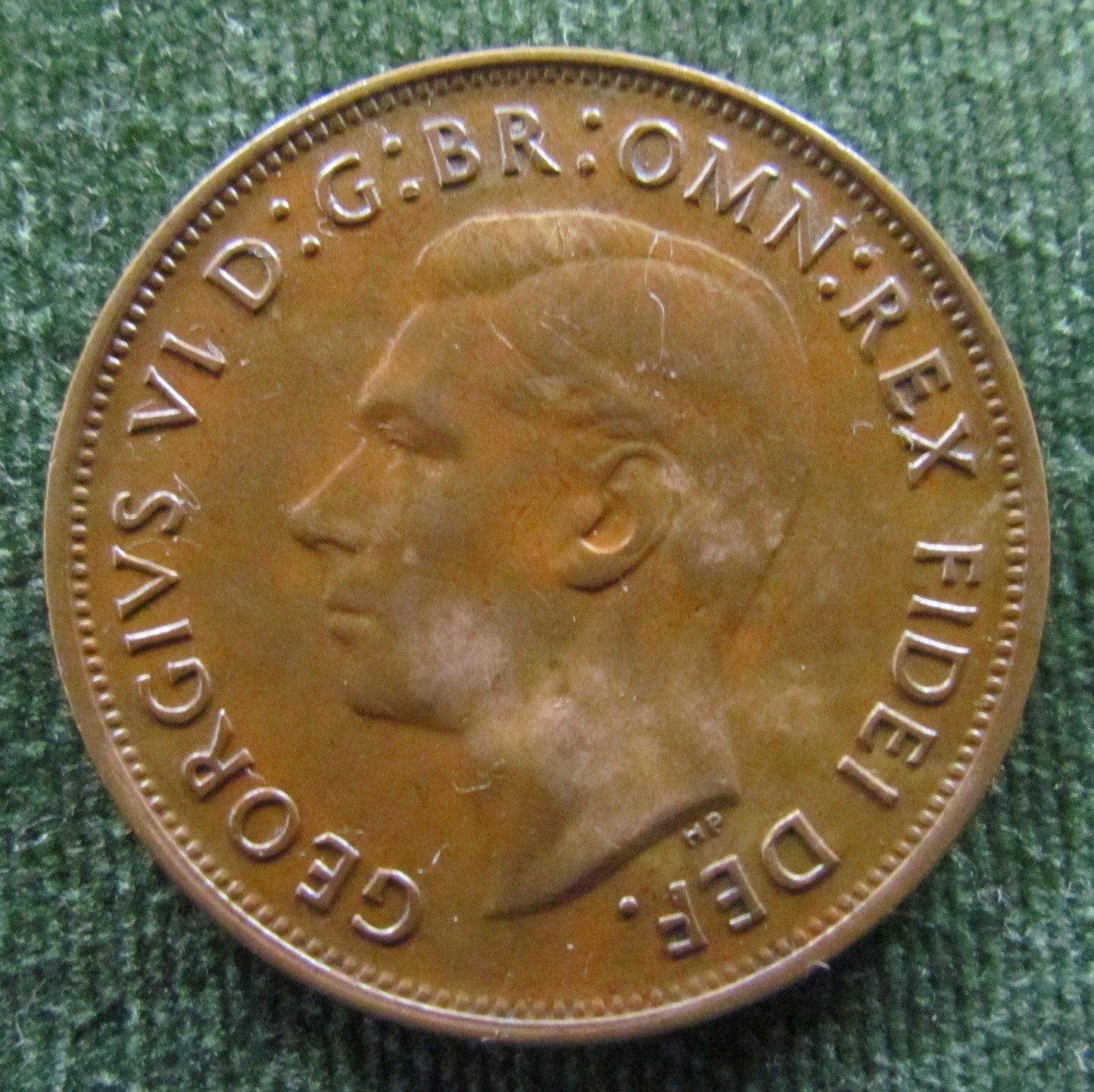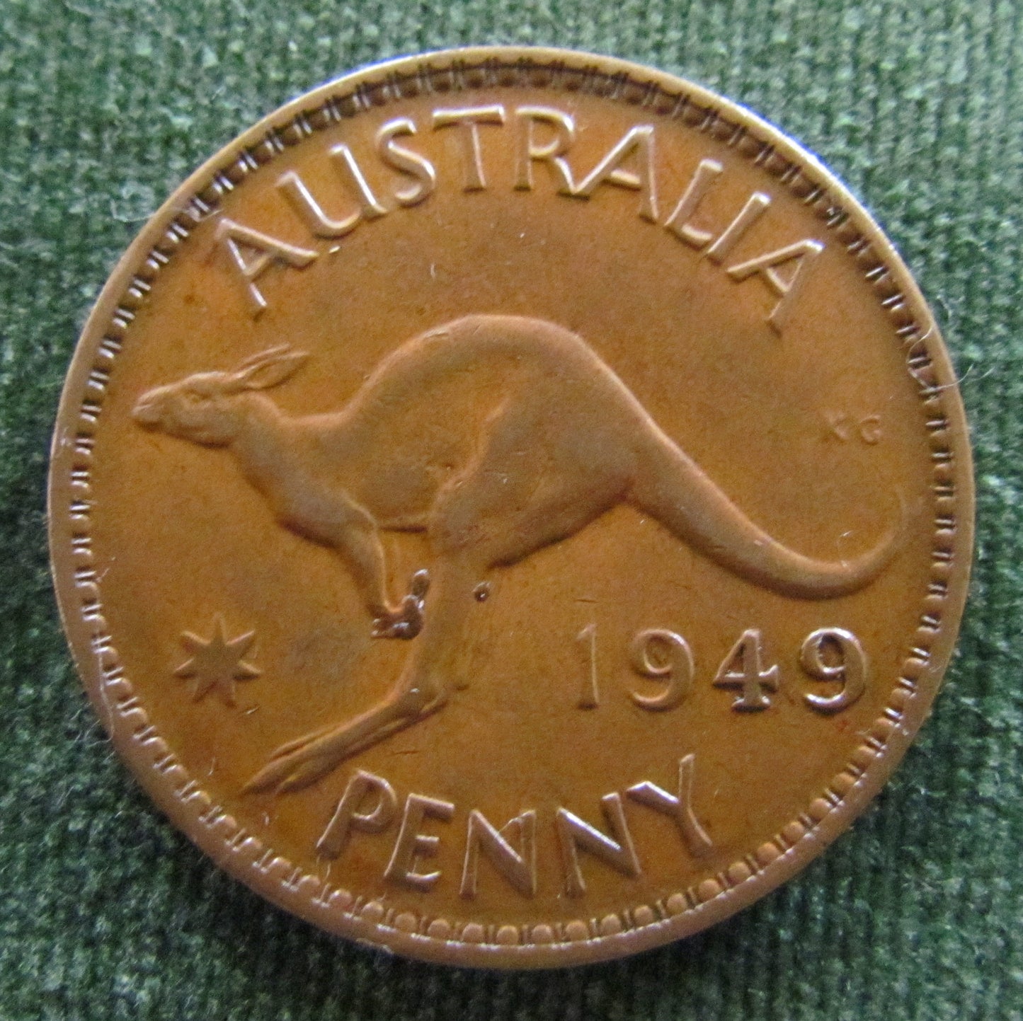 Australian 1949 1d 1 Penny King George VI Coin. A good quality coin having uneven light brown toning with light to moderate handling in circulation. Please view images as all images are of the actual item.