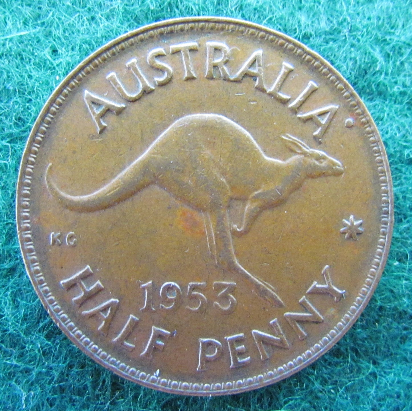 Australian 1953 1/2d Half Penny Queen Elizabeth II Coin