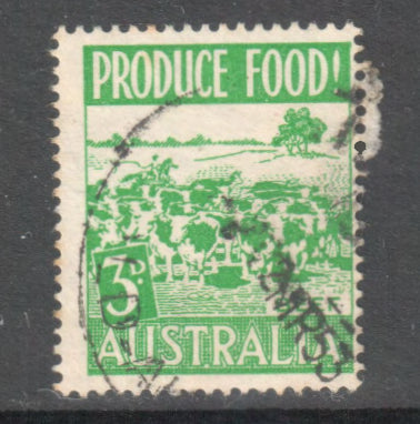 Australian 1953 3d Green Beef Food Production Stamp. A cancelled used stamp. Please view images as all images are of the actual item.