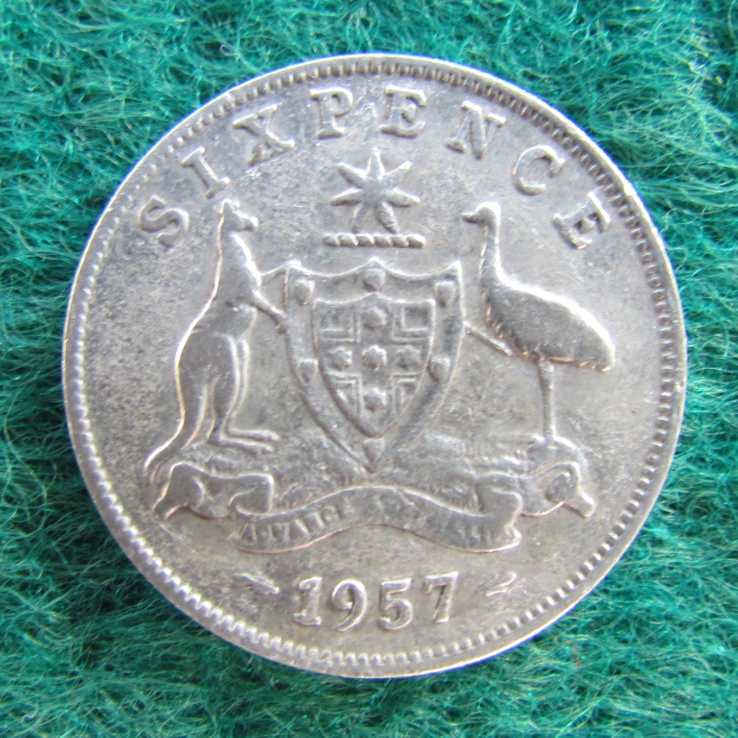 Australian 1957 6d Sixpence Queen Elizabeth II Coin - Circulated. A good coin showing wear consistent with its age and period in circulation. Please view images as all images are of the actual item.