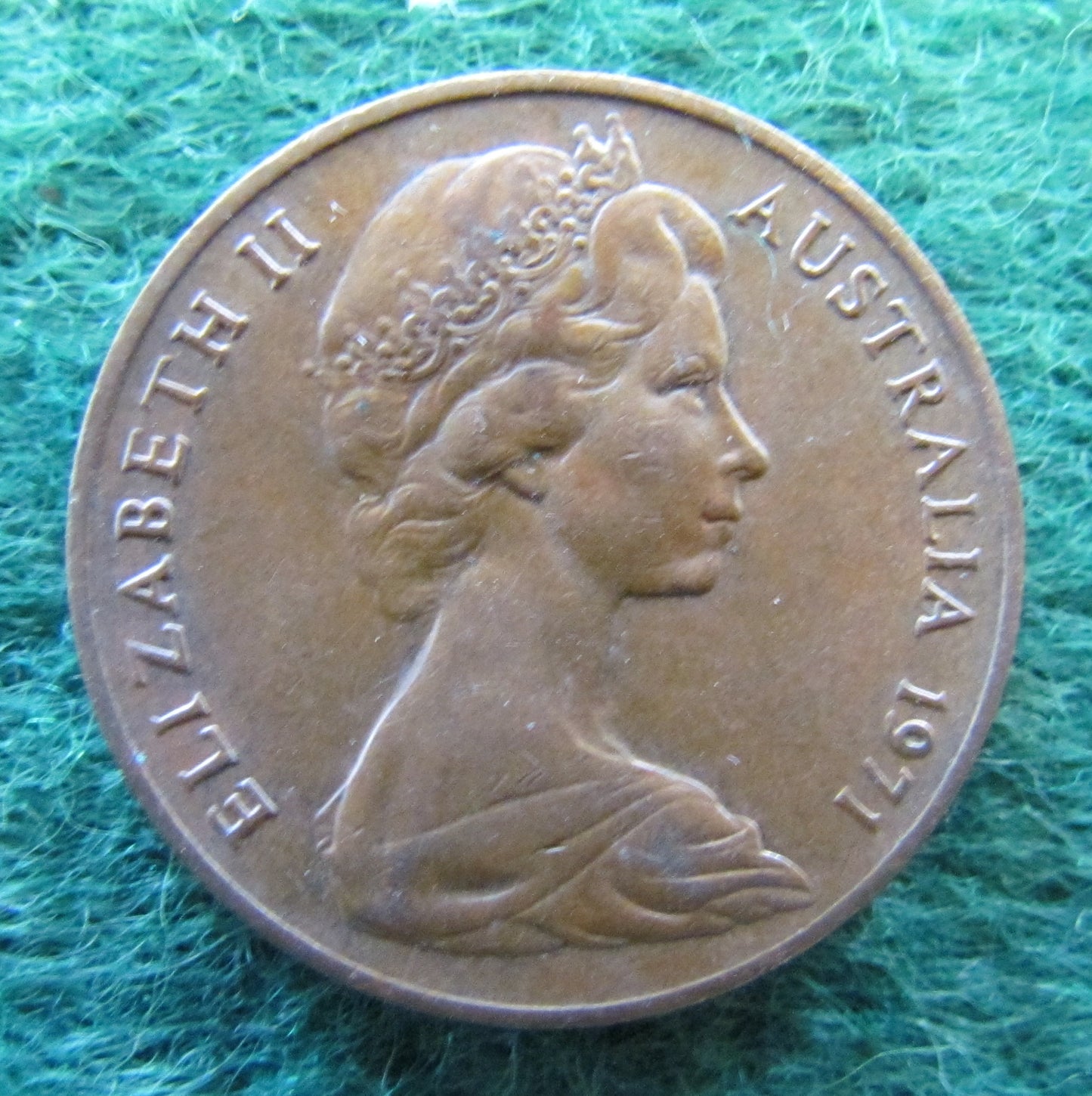 Australian 1971 2 Cent Queen Elizabeth II Coin. A good coin showing wear consistent with a moderate period in circulation with a few blemishes and knocks. Please view images as all images are of the actual item.