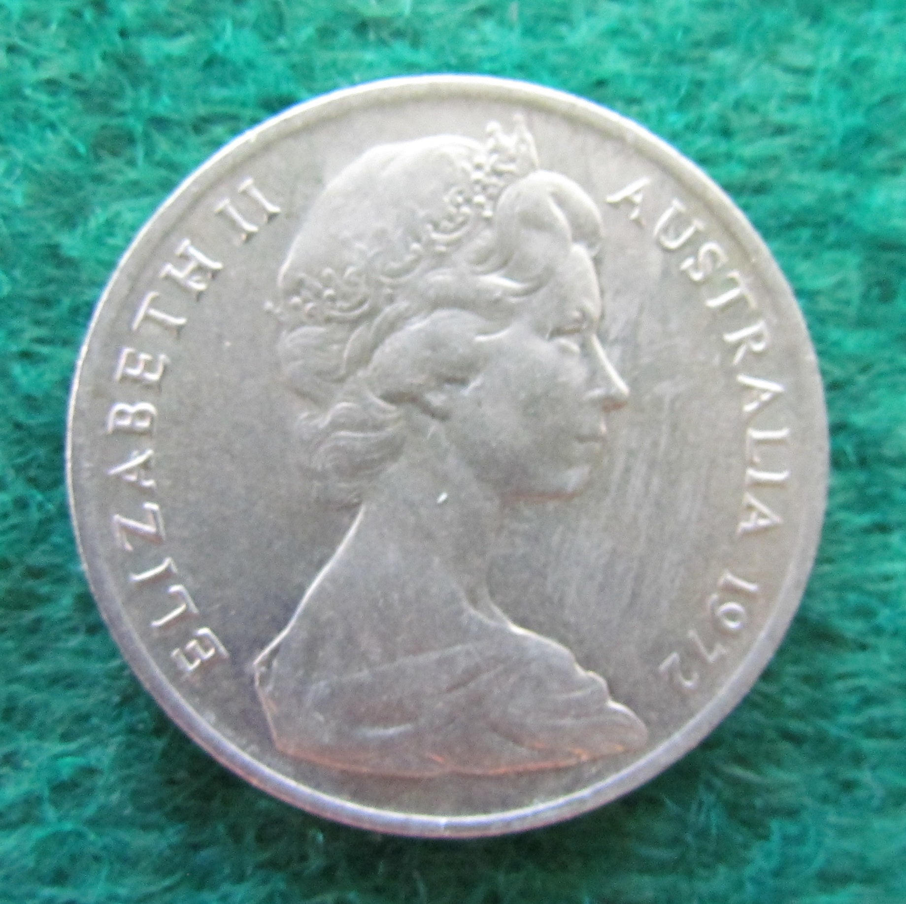 Australian 1972 10 Cent Queen Elizabeth II Coin - Circulated. A good coin showing wear consistent with age and time in circulation. Please view images as all images are of the actual item.