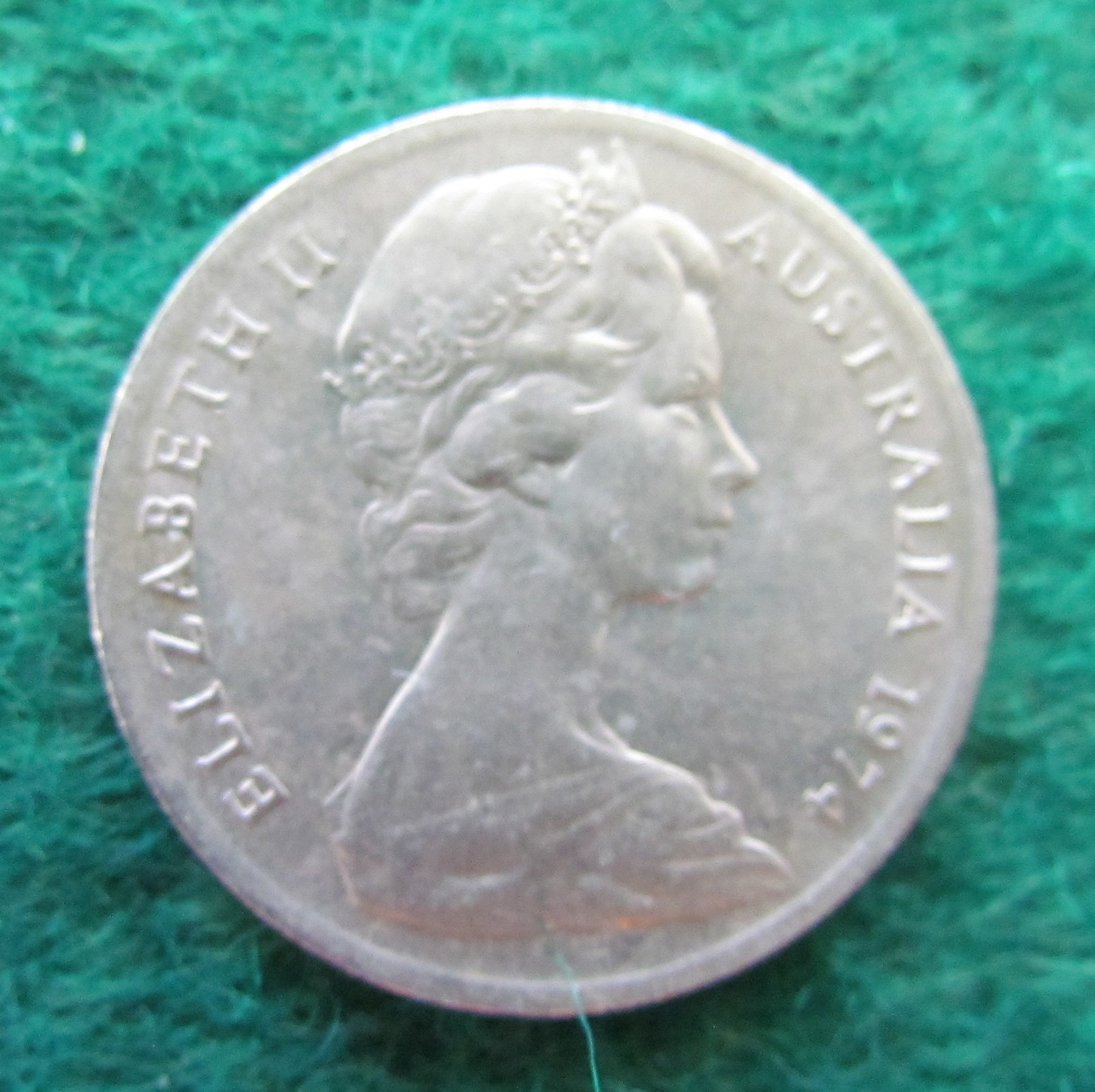 Australian 1974 10 Cent Queen Elizabeth II Coin - Circulated. A good coin showing wear consistent with age and time in circulation. Please view images as all images are of the actual item.