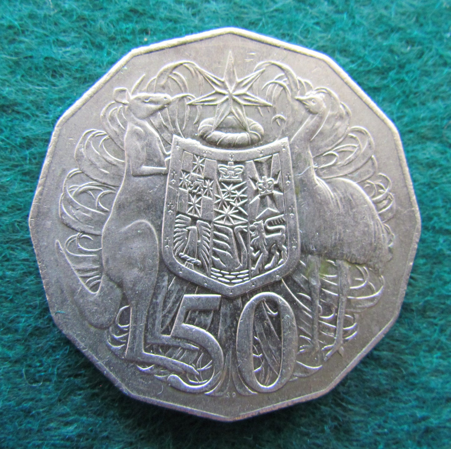 Australian 1976 Coat Of Arms 50 Cent Queen Elizabeth Coin - Circulated. A good condition coin. Please view images as all images are of the actual item.