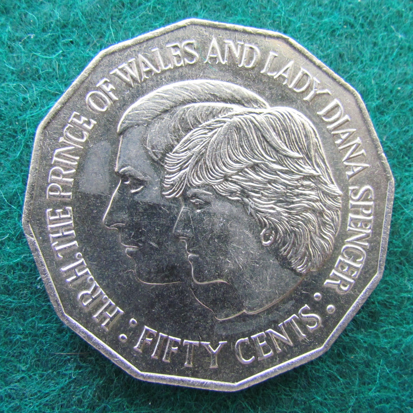 Australian 1981 Charles & Diana 50 Cent Queen Elizabeth Coin - Circulated. A good coin. Please view images as all images are of the actual item.