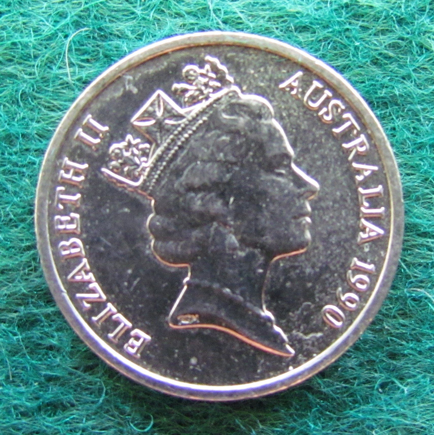 Australian 1990 5 Cent Queen Elizabeth II Coin - Circulated. A very good coin showing wear consistent with age and and a very short period in circulation. Please view images as all images are of the actual item.