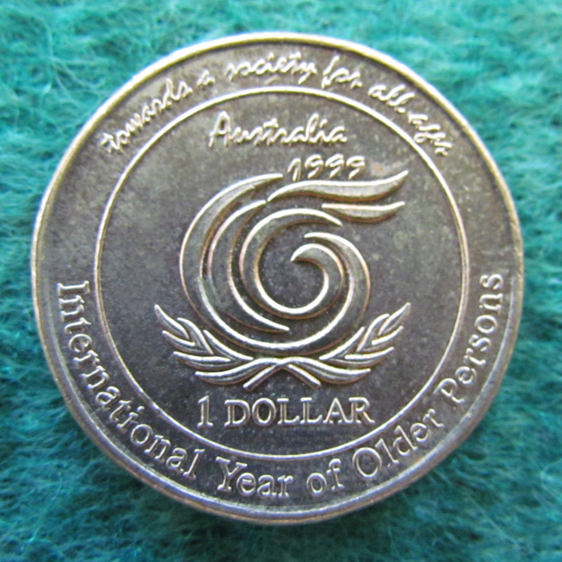 Australian 1999 1 Dollar International Year Of Older Persons Queen Elizabeth Coin - Circulated. A good coin showing wear consistent with moderate to heavier handling in circulation. Please view images as all images are of the actual item.