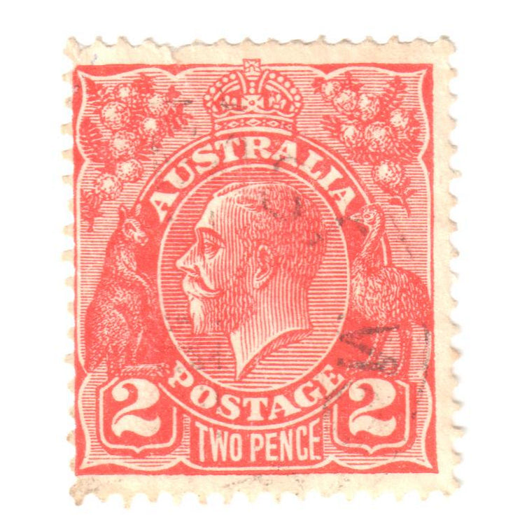 Australian 2 Penny Red King George V Stamp. Type 5 Small Multiple Watermark. All images are of the actual item.