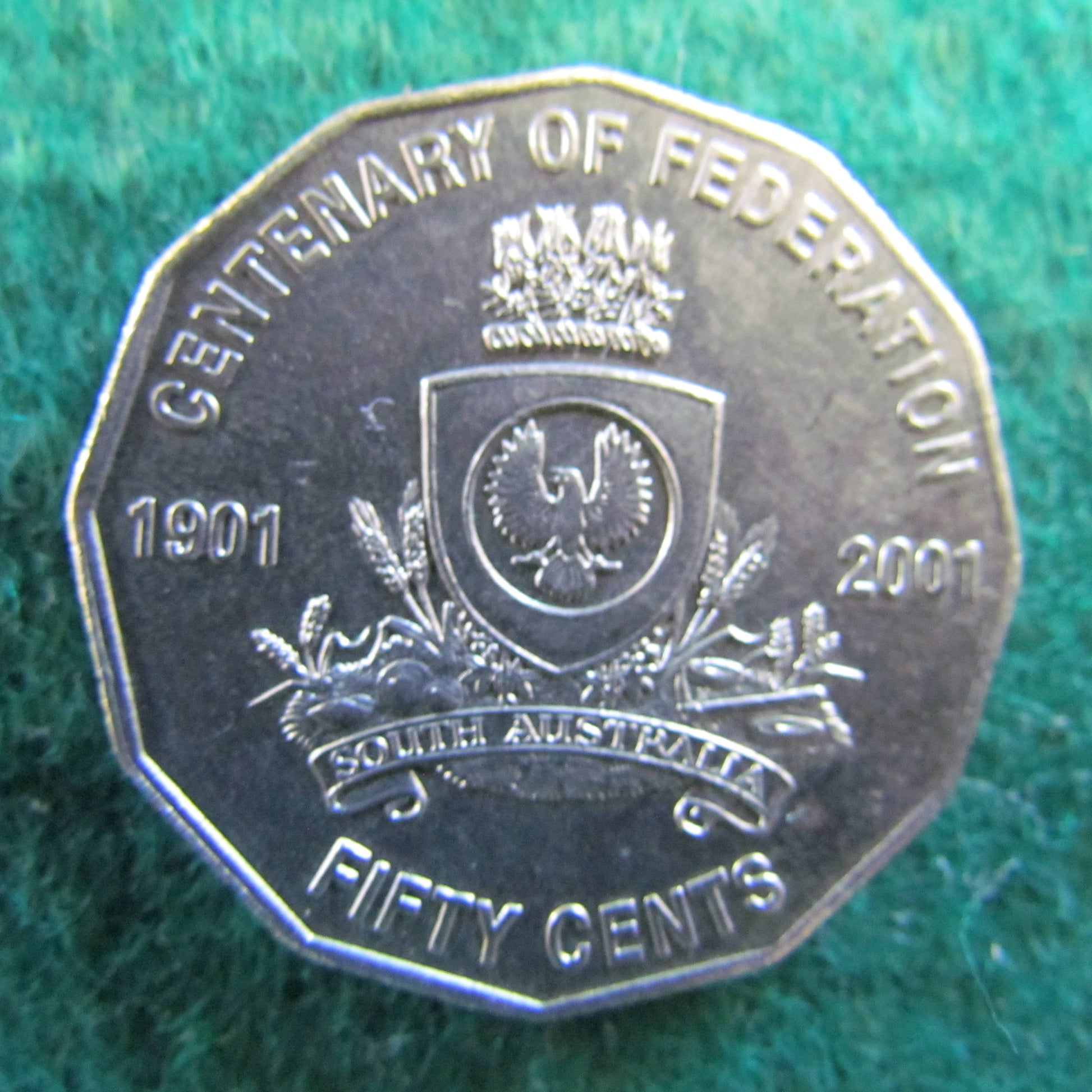 Australian 2001 50 Cent Coin Centenary Of Federation South Australia