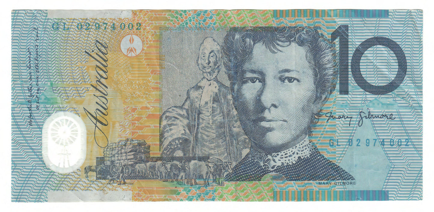 Australian 2002 10 Dollar MacFarlane Henry Polymer Banknote s/n GL 02974002- Circulated