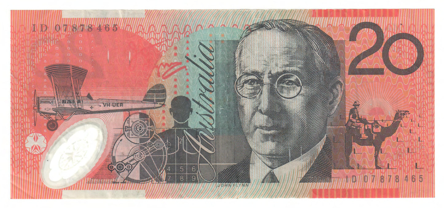 Australian 2007 20 Dollar Stevens Henry Polymer Banknote s/n ID 07878465- Circulated. A fair note with wallet folds, multiple creases, surface blemishes, a heavily circulated note, please view images. All images are of the actual item.