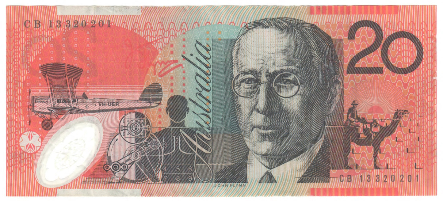Australian 2013 20 Dollar Stevens Parkinson Polymer Banknote s/n CB 13320201 - Circulated