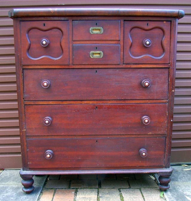 Cedar 7 drawer chest on turned feet with flush fitting handles on the glove drawers. Sympathetically restored.