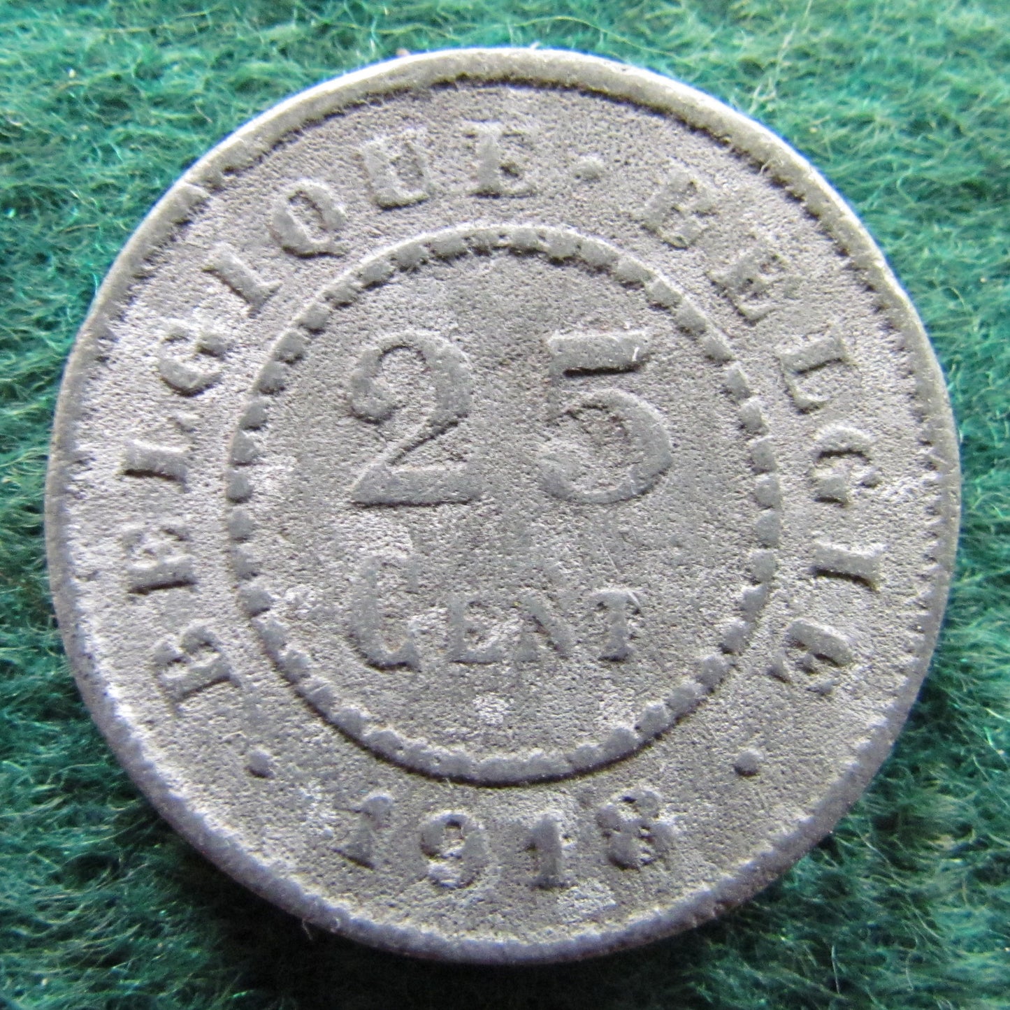 Belgium 1918 25 Centimes Coin. A fair to good coin showing heavy wear & handling consistent with long term circulation. Please view images as all images shown are of the actual item.