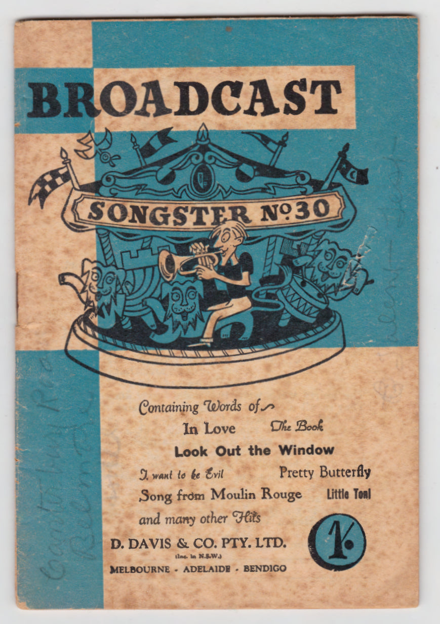 Broadcast Songster No. 30. Ahard to find songster in fair to good condition with rubs, bumped corners & edges, folds & creases, stained, toned with some fauxing. All images are of the actual item.