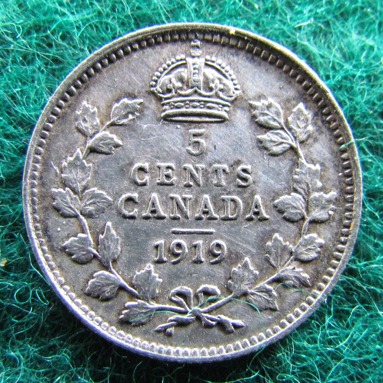 Canada 1919 5 Cent King George V Coin. All images are of the actual coin.