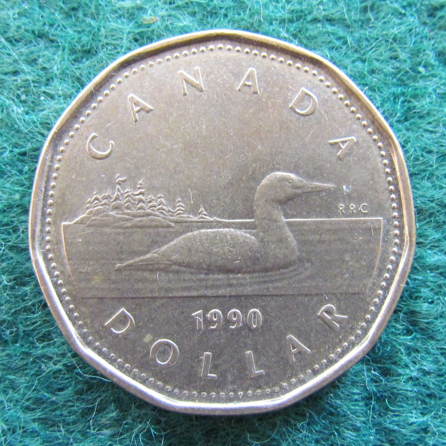 Canada 1990 1 Dollar Queen Elizabeth II Coin. A good coin showing signs of wear and colour indicating light circulation and handling, ungraded, please view images. All images are of the actual item.