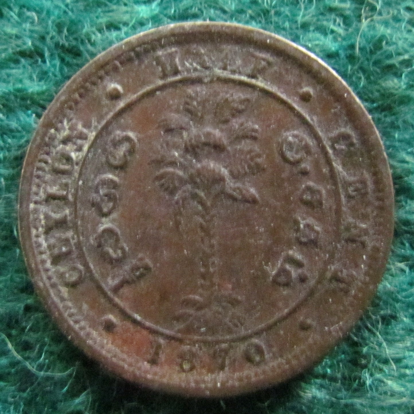 Ceylon 1870 1/2 Cent Coin. A good coin showing wear and handling consistent with moderate to heavy circulation. Please view images as all images shown are of the actual item.