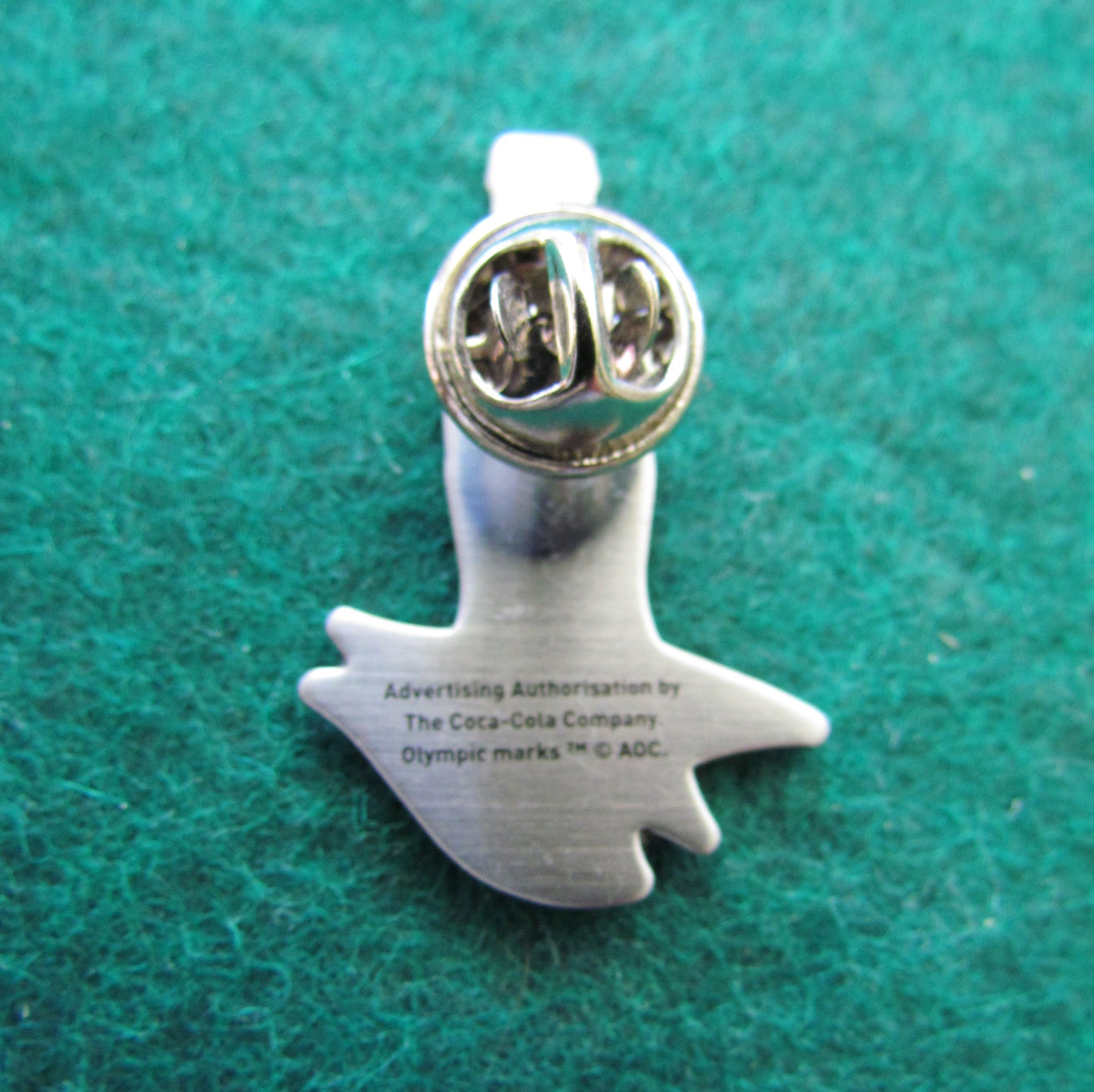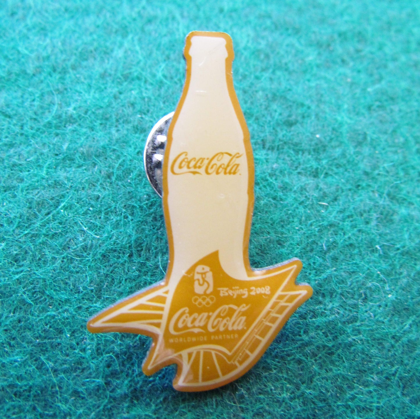 Coca Cola Tac Pin Beijing Olympics 2008. Authorized Coca Cola advetising by the AOC. Brushed steel pin with coloured infil front.