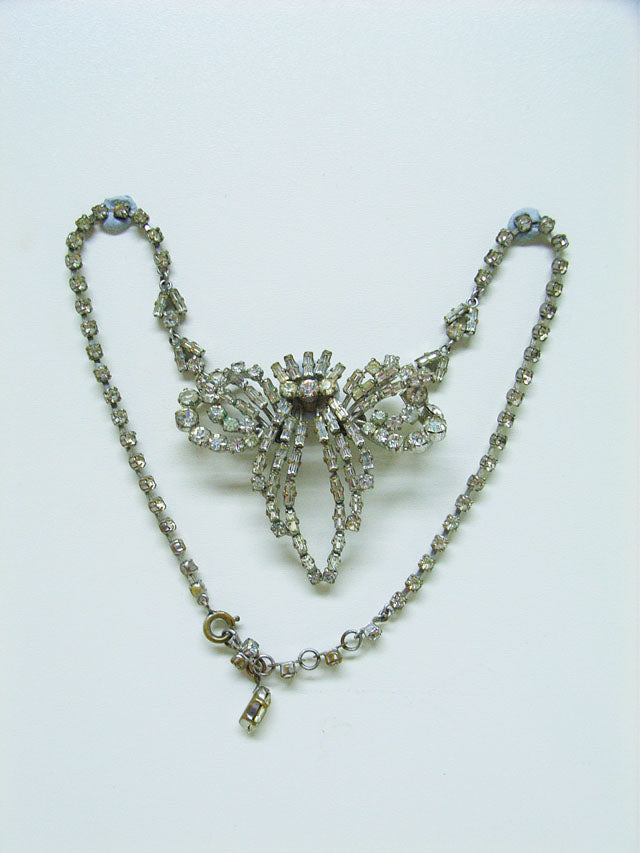 Unusual diamante necklace set with clear simulate stones. Please view images as all images are of the actual item.