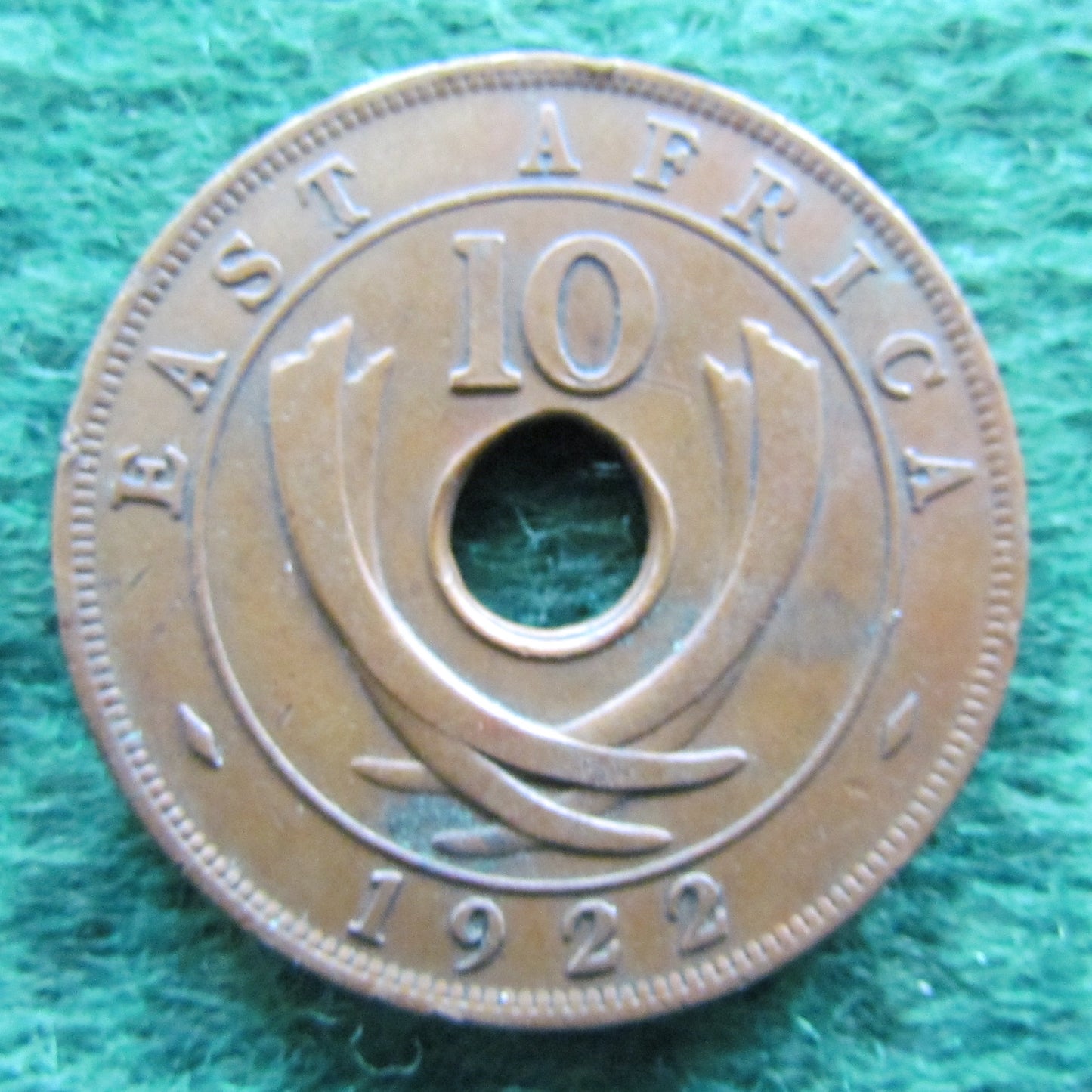 East Africa 1922 10 Cent King George V Coin - Circulated. A good coin showing wear and colouring consistent with a moderate period in circulation. Please view images as all images are of the actual item.