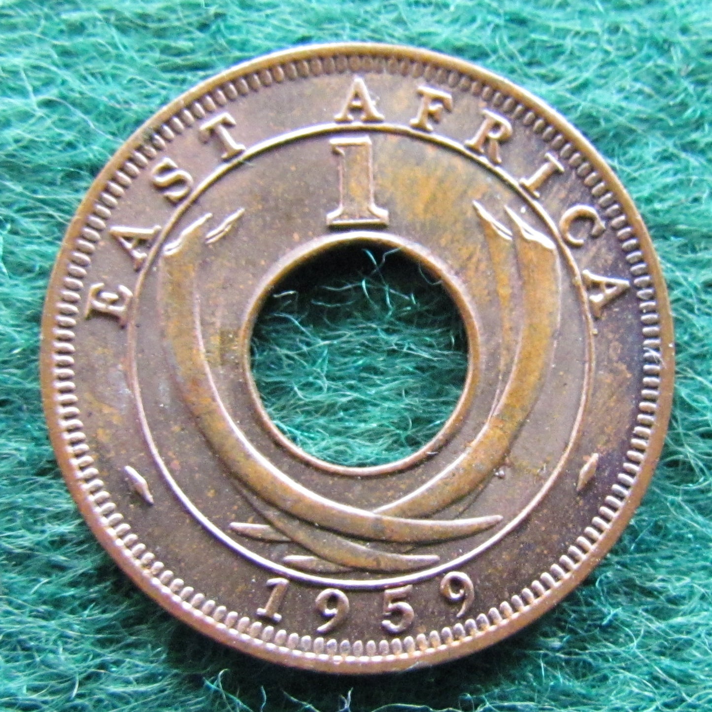 East Africa 1959 1 Cent Queen Elizabeth II Coin - Circulated. A good coin showing wear and colouring consistent with a short period in circulation, retaining reasonable mint sheen, please view images. Please view images as all images are of the actual item.
