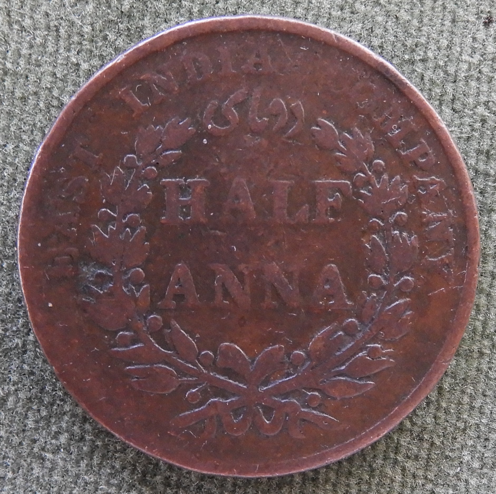 East India Company 1835 Half Anna Uniform Coinage Series Coin - Circulated. A heavily circulated coin in fair to good condition. Please view images as all images are of the actual item.