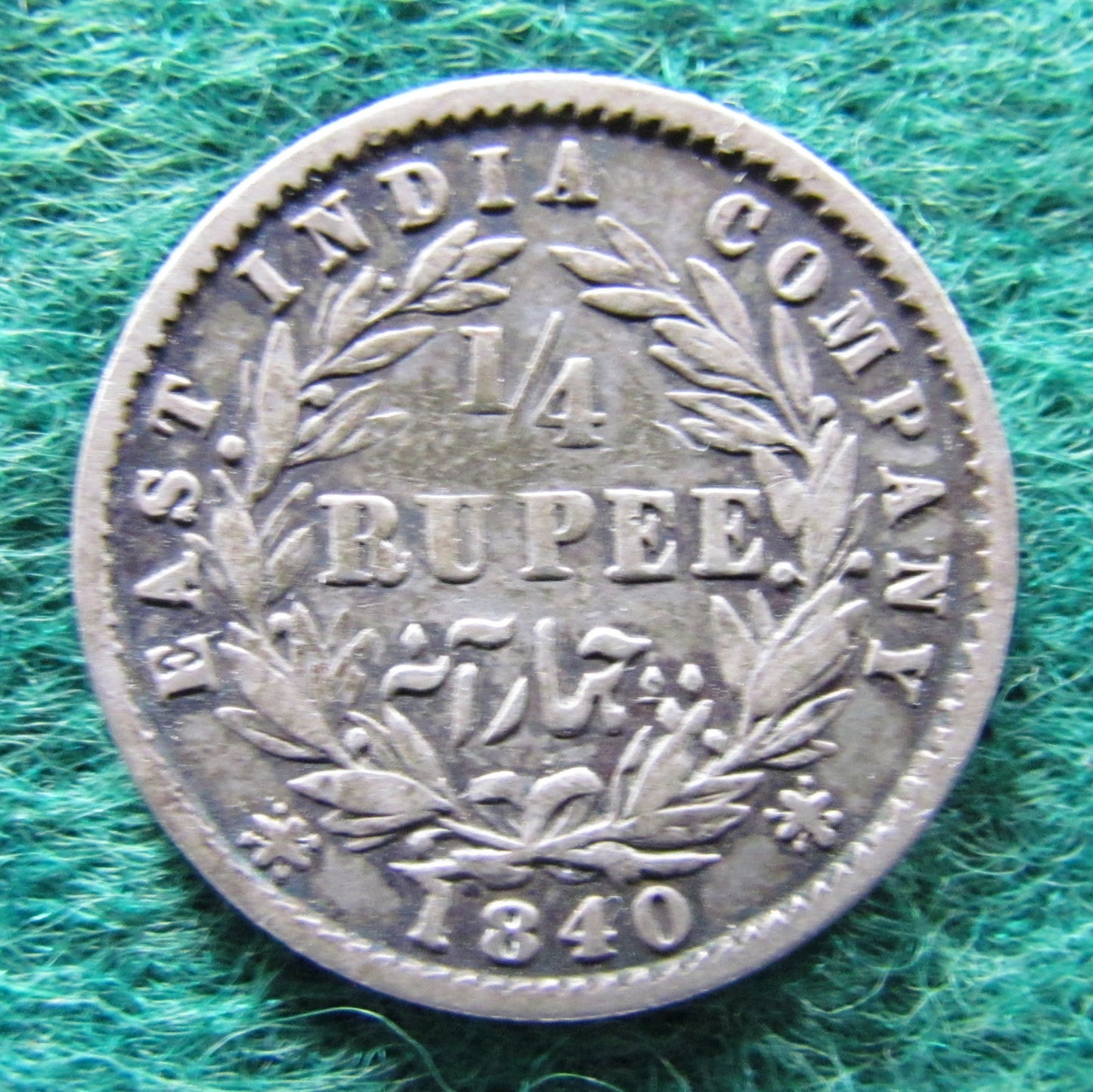 East India Company 1840 1/4 Rupee Queen Victoria Coin Quarter Rupee Queen Victoria Coin